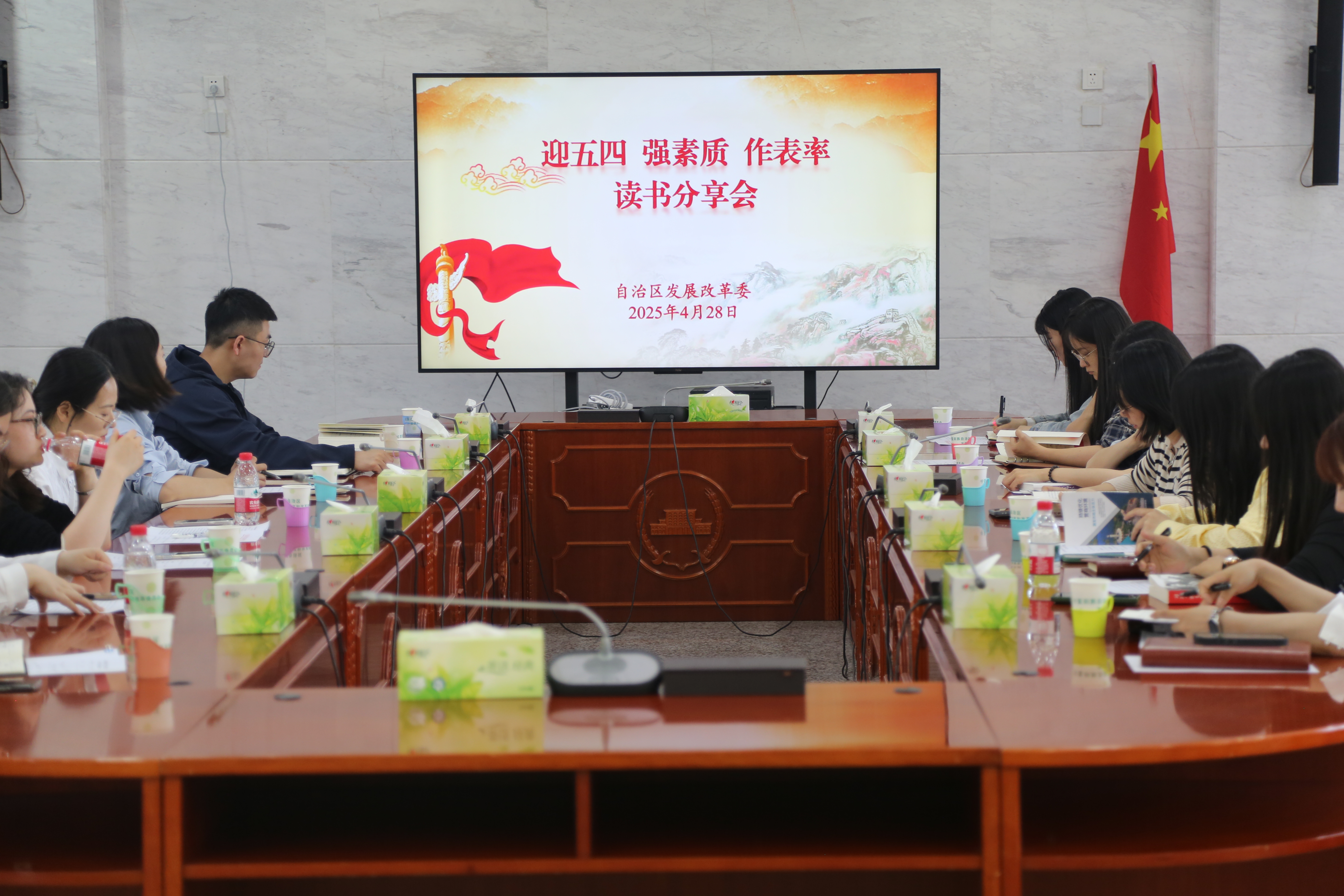 在五四青年节到来之际,4月28日,自治区发展改革委举办“迎五四 强素质 展担当”读书分享会。来自委机关、委属单位的12位青春“发”言人登台亮相,带来一场精彩纷呈的读书心得交流盛宴。