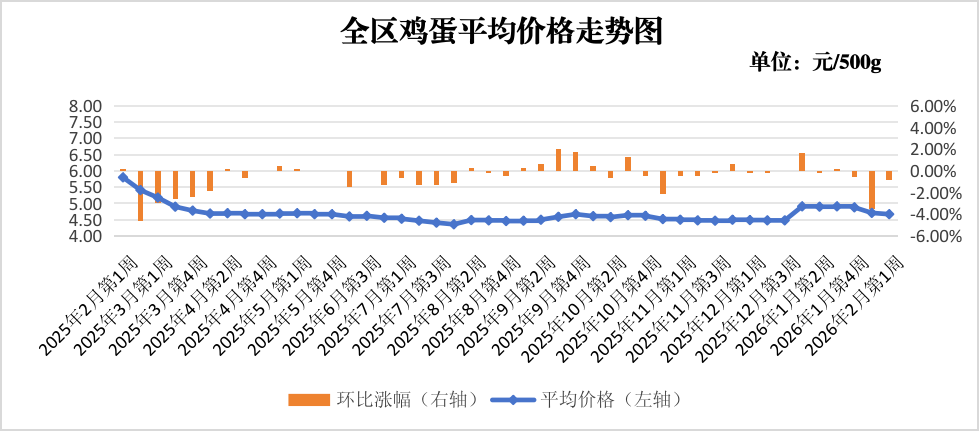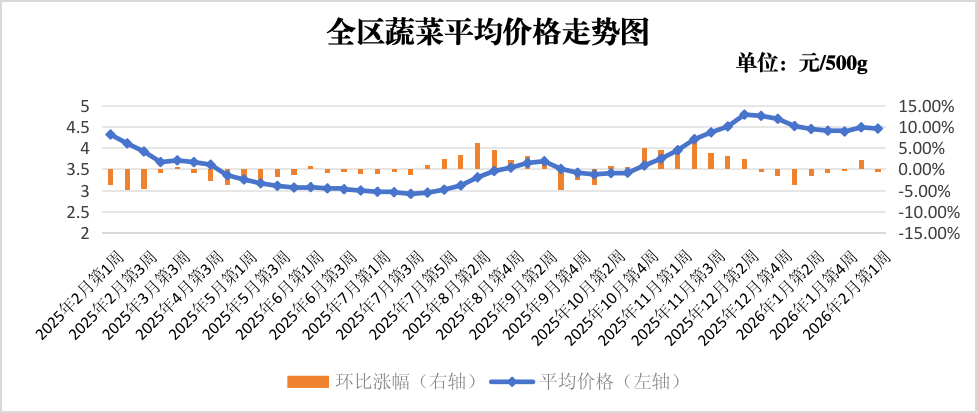 2026年2月2日-6日,全区监测的重要民生商品价格中,粮油价格基本稳定,蔬菜价格略有下降,肉禽蛋价格小幅波动,水果价格涨跌互现。具体情况如下: