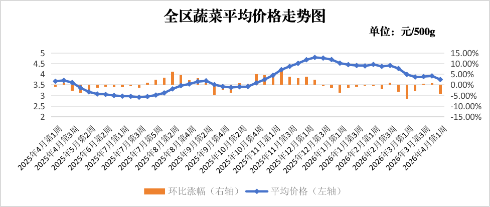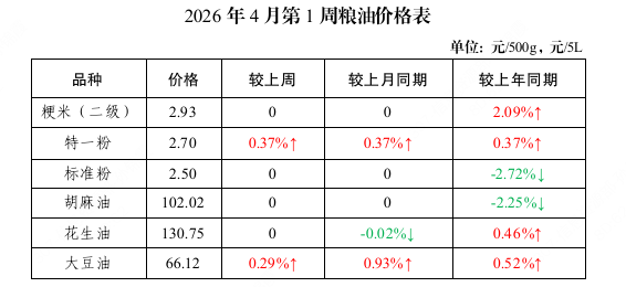2026年3月30日-4月3日,全区监测的重要民生商品价格中,粮油价格保持平稳,蔬菜价格小幅下降,肉禽蛋价格略有波动,水果价格涨跌互现。具体情况如下: