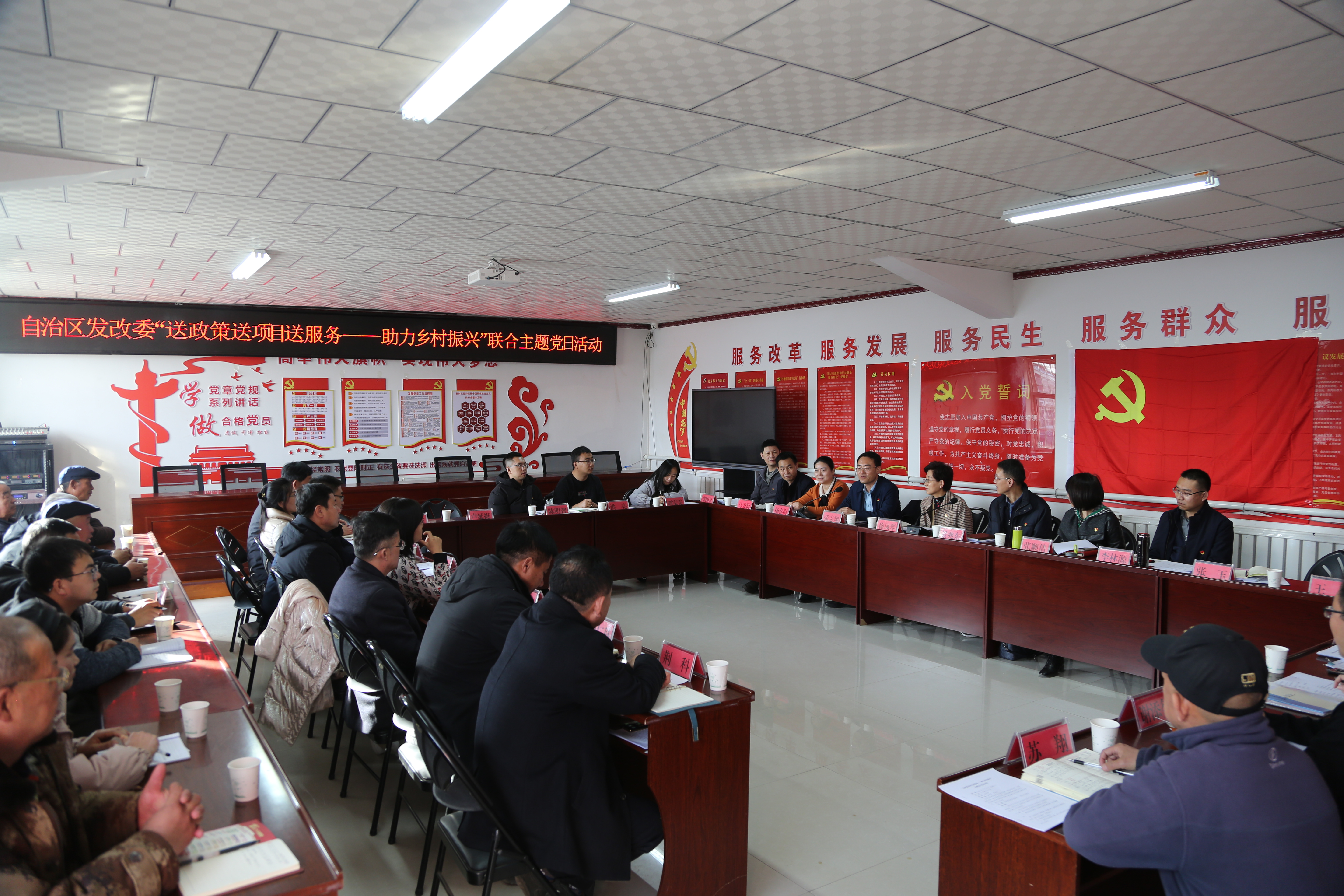 2月22日,自治区发展改革委机关办公室、地区处、农经处、机关党委和驻委纪检监察组5个党支部,组织党员干部走进结对帮扶的红寺堡区新庄集乡红川村,与红寺堡区发展改革局、红川村党员干部联合开展“送政策送项目送服务——助力乡村振兴”联合主题党日活动。党组成员、驻委纪检监察组组长徐凤琴,党组成员、副主任景兆东参加了此次活动。