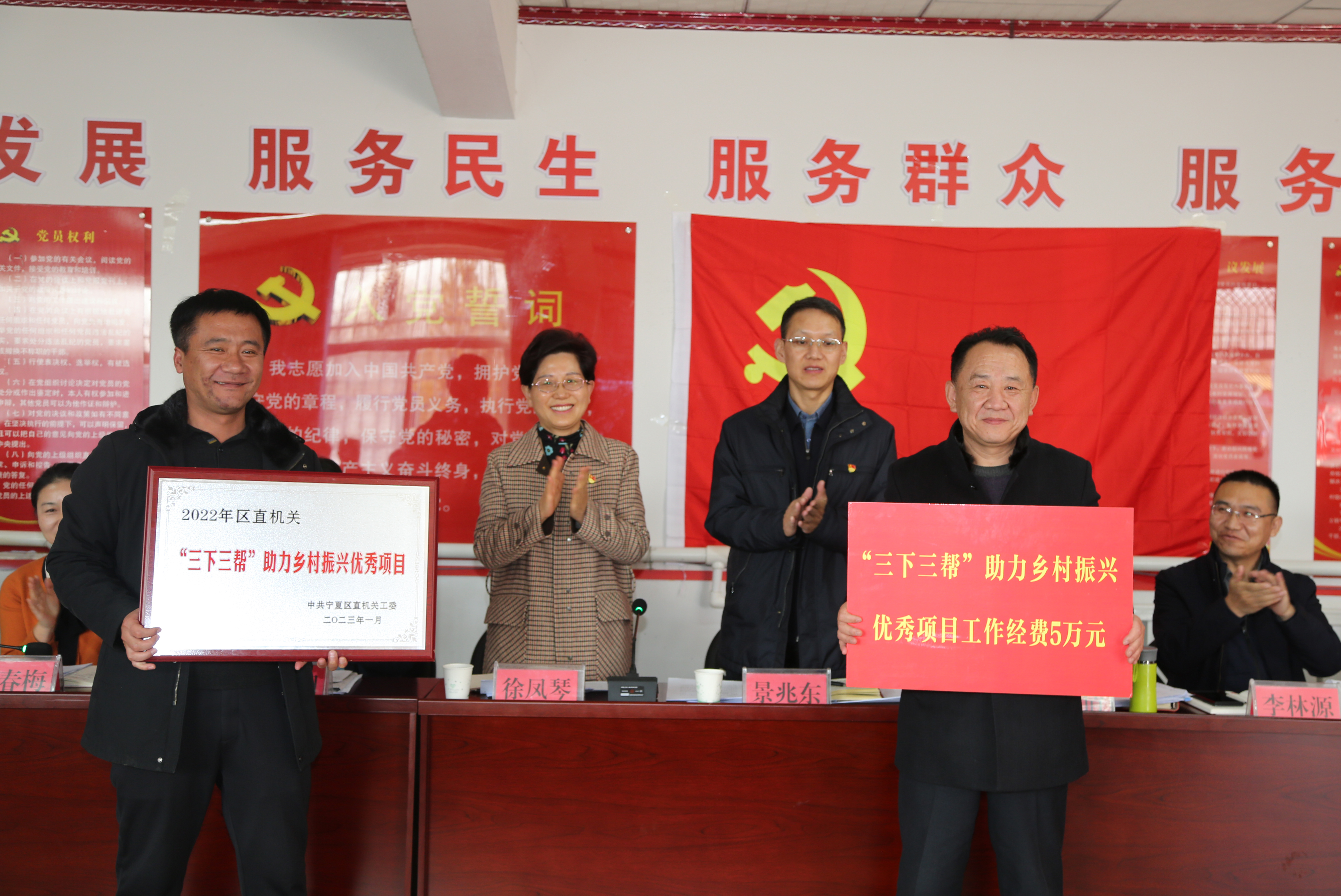 活动中,还向自治区发展改革委驻红川村工作队送上区直机关工委颁发的“三下三帮”助力乡村振兴优秀项目奖牌和工作经费,勉励队员们要认真落实区直机关“三下三帮”工作要求,当好党建领航员,对标蓝图促发展,继续谱写乡村振兴“新篇章”。