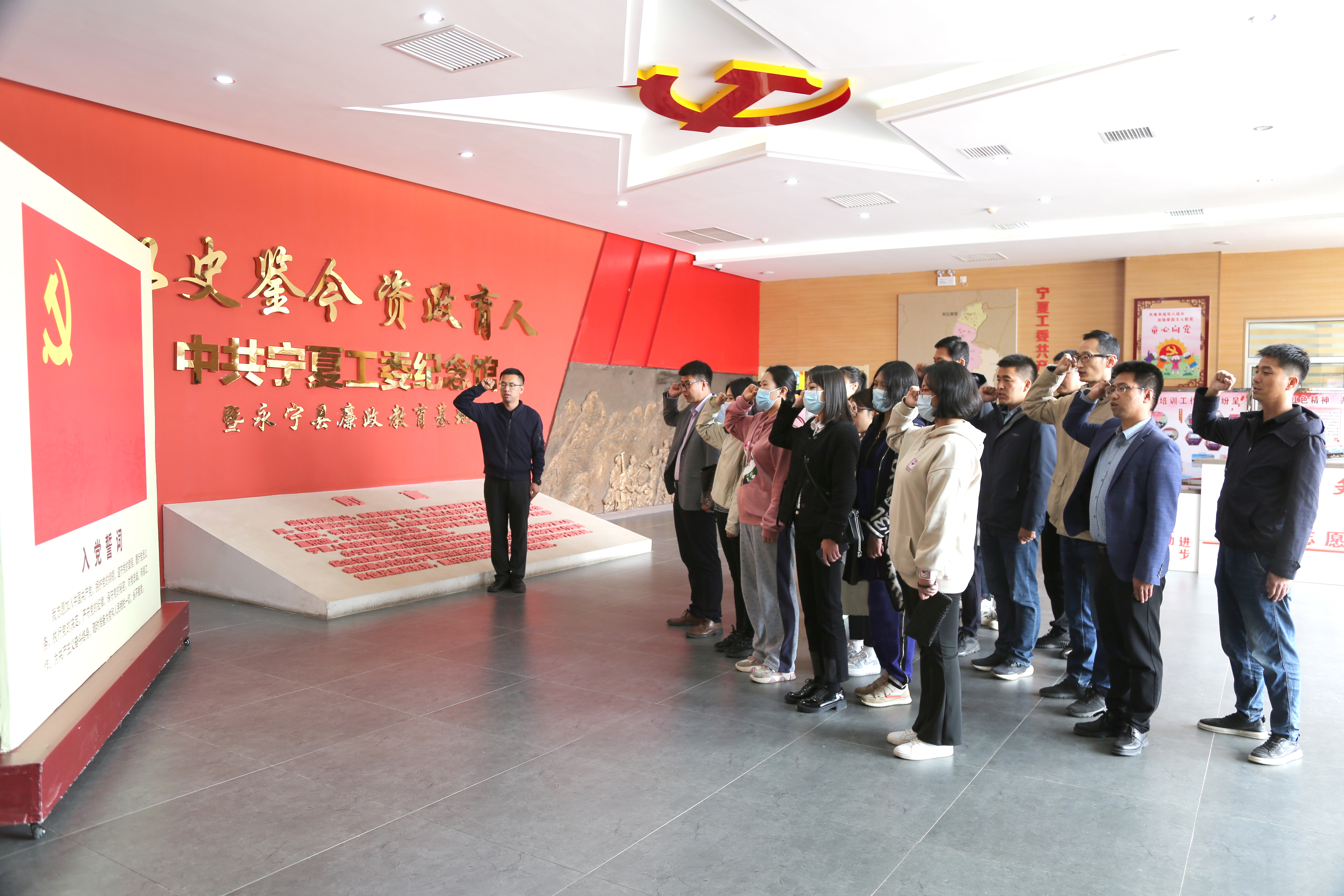 在宁夏工委纪念馆,青年党员干部依次参观了中国共产党党史、宁夏工委史、永宁县发展史以及廉政教育4个展厅,通过现场图文展示、场景复原、多媒体演示等多种方式,大家共同回顾党的光辉历史、革命先辈的英雄事迹、宁夏工委的创建和发展历程。以崔景岳为代表的共产党员在宁夏地区开展革命工作的峥嵘岁月,深深感染着现场的每一个人。随后,全体青年党员干部到纪念馆北侧崔景岳烈士雕像前鞠躬缅怀,并参观了宁夏工委旧址。