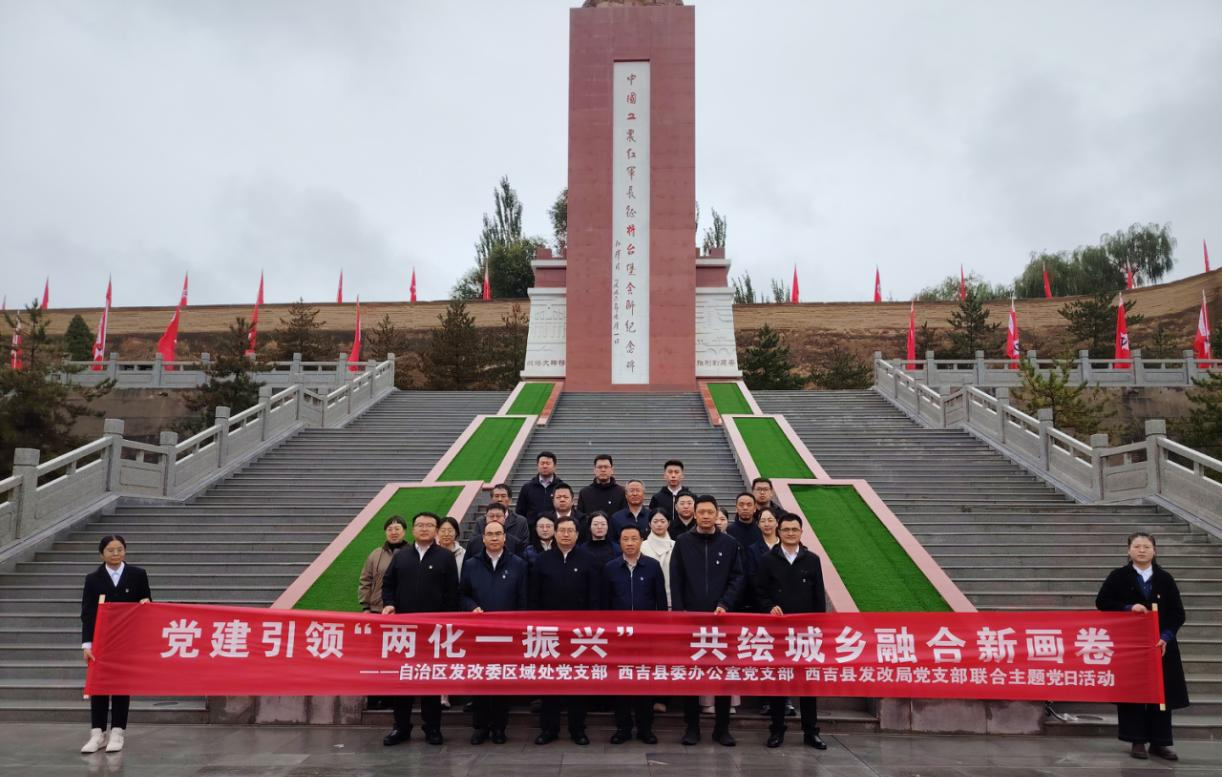 为深入学习贯彻习近平总书记考察宁夏重要讲话精神,扎实推进统筹“两化一振兴”各项任务走深走实,推动党建与业务工作融合更紧、质效更优,10月10日,自治区发展改革委区域协调处党支部、西吉县委办公室党支部、西吉县发展改革局党支部前往将台堡红军会师纪念园、单家集红军长征纪念地、六盘山(西吉)肉牛产业融合发展园区等地开展联合主题党日活动。