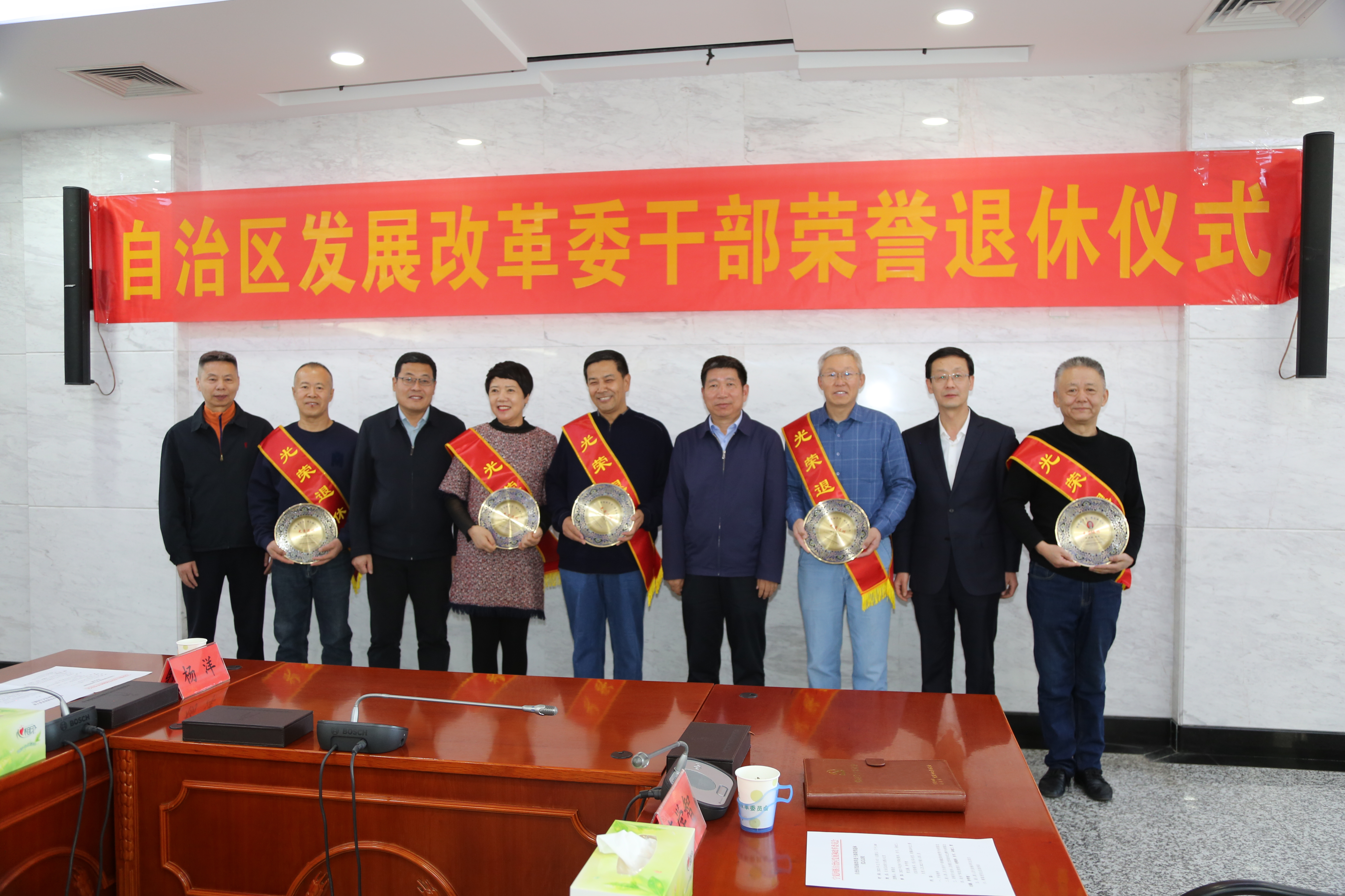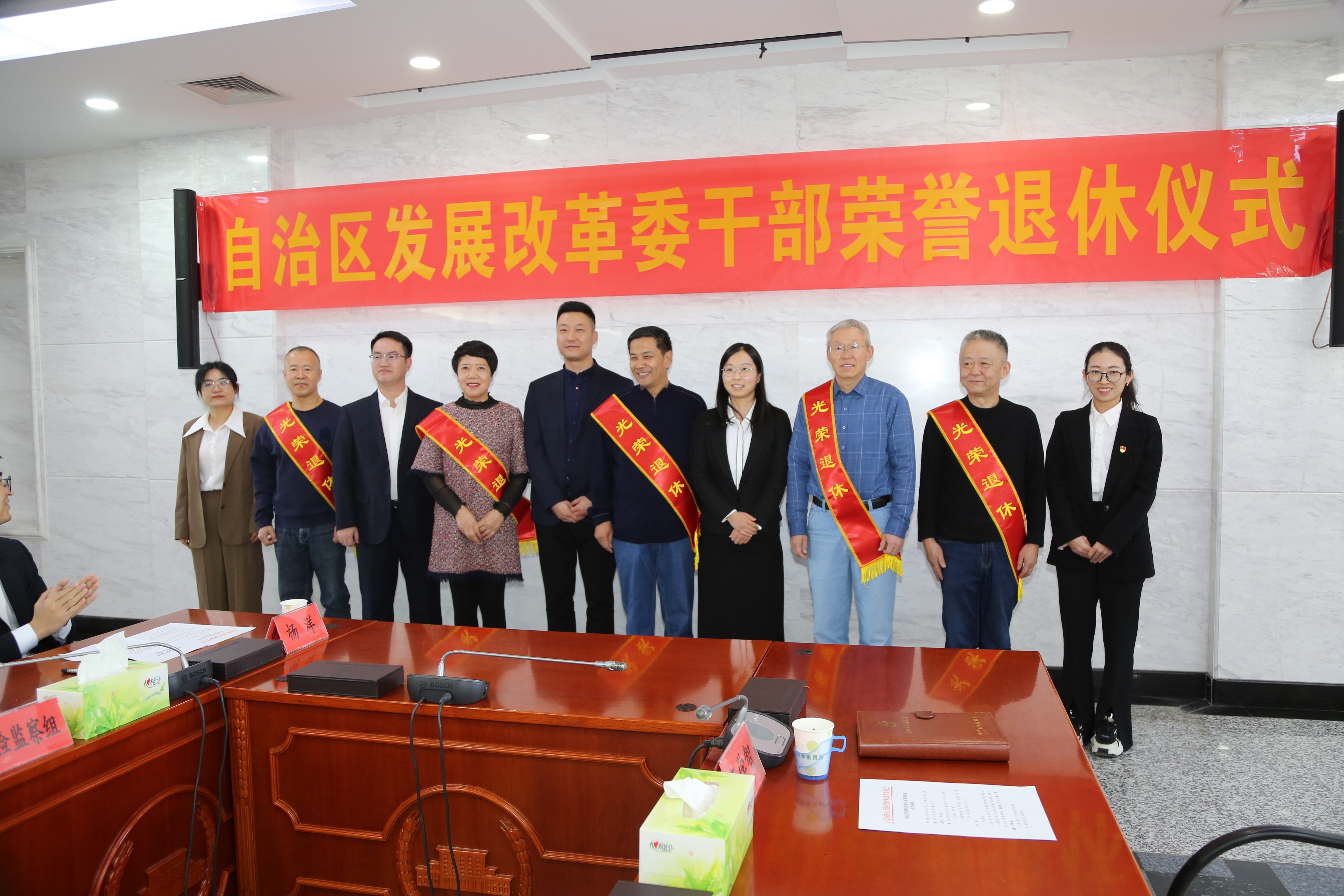 12月8日下午,自治区发展改革委为今年退休的10名同志举办荣誉退休仪式。受委党组书记、主任李郁华委托,委党组成员、副主任郝留虎主持会议,并代表委党组及全委干部职工为退休同志送上组织的关怀和诚挚的祝福。委领导、机关各处室、委属各单位主要负责人及2023年新入职人员参加荣退仪式。