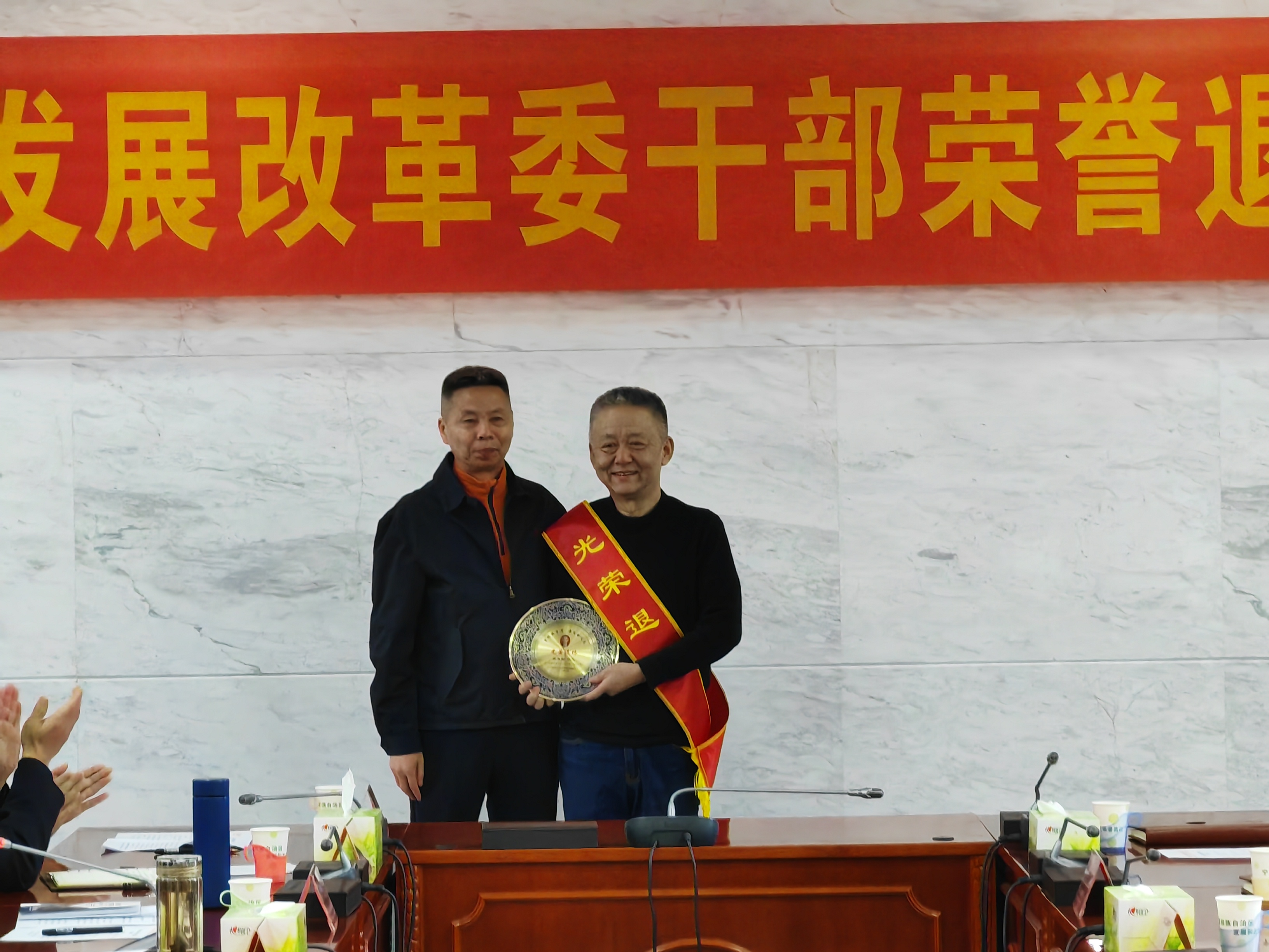 荣退仪式上气氛温馨、暖流涌动。新入职人员代表为退休同志佩戴荣誉绶带,委领导为他们颁发了荣誉退休纪念牌。在座谈中,退休同志深情回顾了自己职业生涯的点点滴滴,畅谈了往昔工作奋斗的美好时光,深切表达了对组织的衷心感谢,对发展改革事业的满腔热爱和美好祝福。新入职人员代表在发言中对退休同志几十年如一日的无私奉献和默默坚守致以崇高敬意,表示将传承退休同志的优秀精神品质和优良工作作风,进一步坚定理想信念、牢记初心使命、努力担当作为,用实际行动践行青春誓言,跑好发展改革事业的下一程。