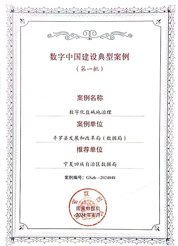 “平罗县数字化盐碱地治理”项目通过建设数字乡村“一张图”等3个系统,实现盐碱地“资源”的数字化治理和科学开发利用。项目实施后,宝丰镇宝丰村示范区内土壤全盐含量降低30%以上、pH值降低5-10%;通过边角滩地、重度盐碱荒滩等荒地整治,新增耕地面积1900亩;新增节水灌溉面积2.4万亩,改善除涝面积2.4万亩;通过种植菌草直接增加收入210万元,提高单位面积土地经济效益20%。