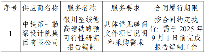供应商名称:中铁第一勘察设计院集团有限公司
